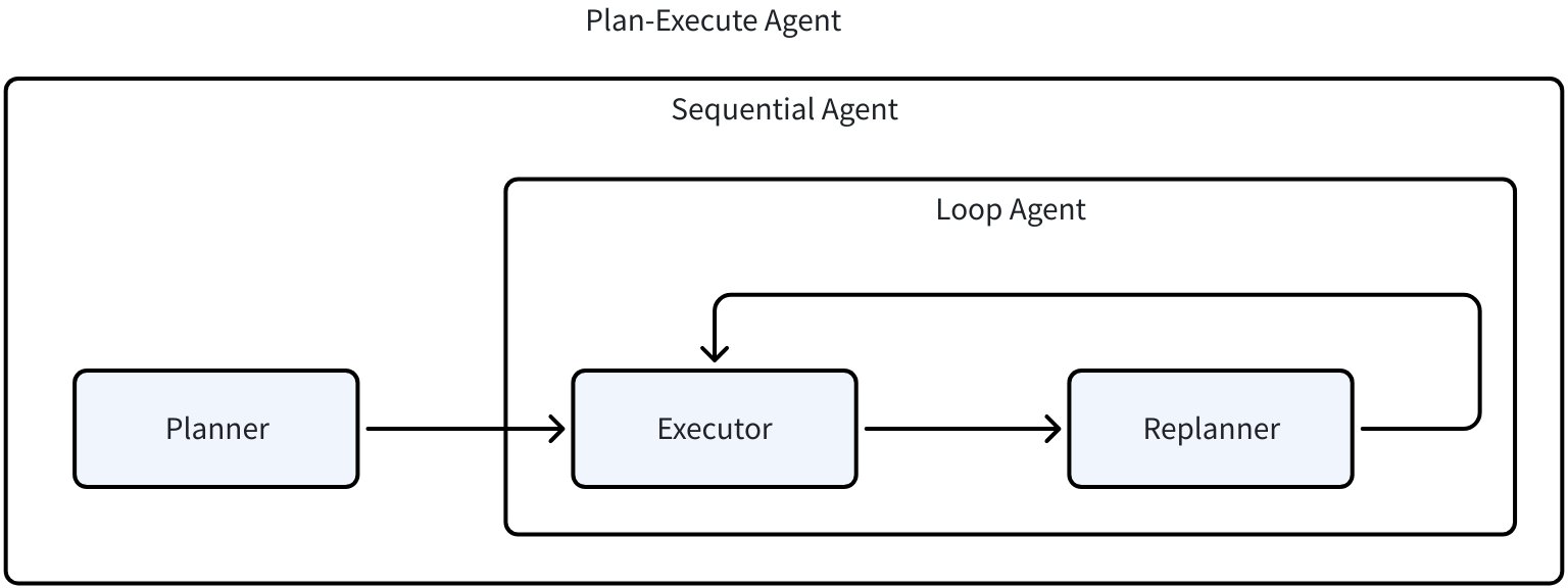 SequentialAgent: First executesPlannerto generate initial plan, then enters execute-replan loop - Inner